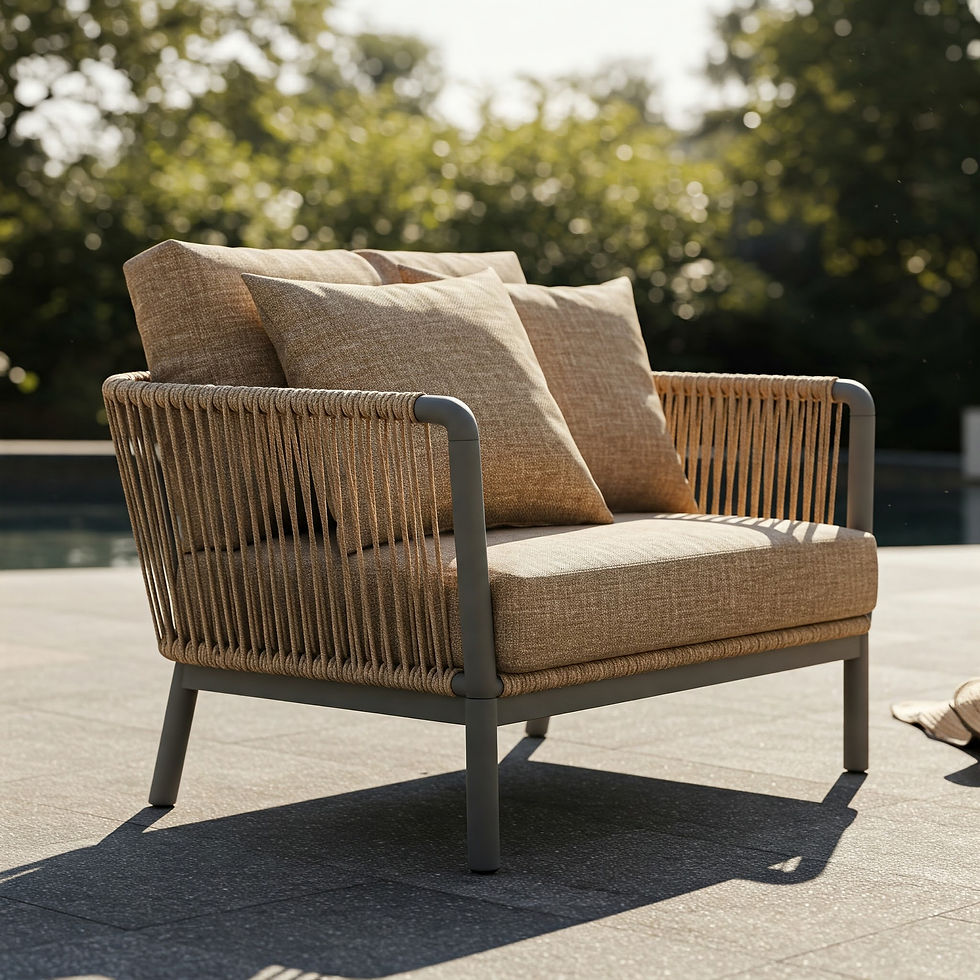 WATER RESISTANT, FADE RESISTANT, RECYCLABLE, OUTDOOR GRADE, UV STABILIZED, DUPLEX POWDER COATED, ZINC PRIMER, LIGHT WEIGHT, BRANDED FABRICS, FABRIC WARRANTY, ASIAN/MODERN/TROPICAL